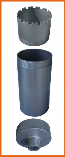 3 -PIECE DIAMOND CORE BIT SYSTEM (from top) CORE BIT (CROWN), BARREL, and COUPLING